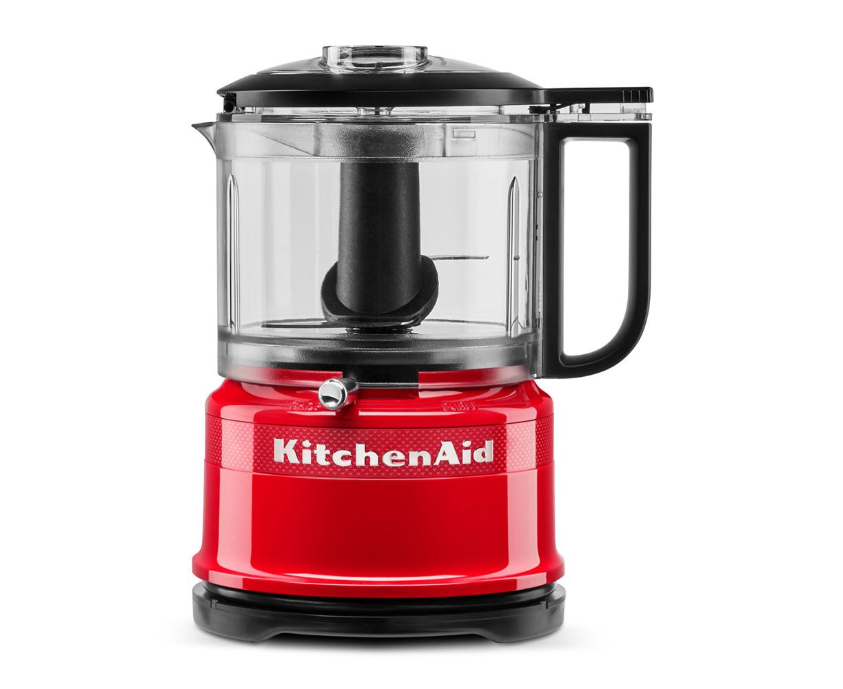 Мини комбайн KitchenAid с чашей объемом 0,8 л. из юбилейной коллекции Queen of Hearts, посвященной 100-летию KitchenAid, выполнен в новом энергичном цвете 'чувственный красный'. Комбайн, как и другие предметы коллекции, украшен декоративной планкой с сотней крошечных сердечек и хромированными деталями.